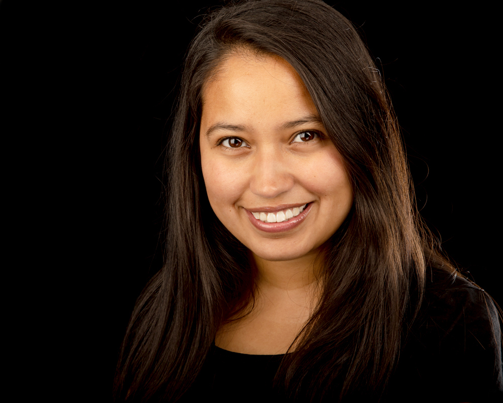 Roxanna is from Chile. I wanted to see if I could emphasize her dark hair and top without losing her in a sea of black. The hair light portion of your tutorial really helped.