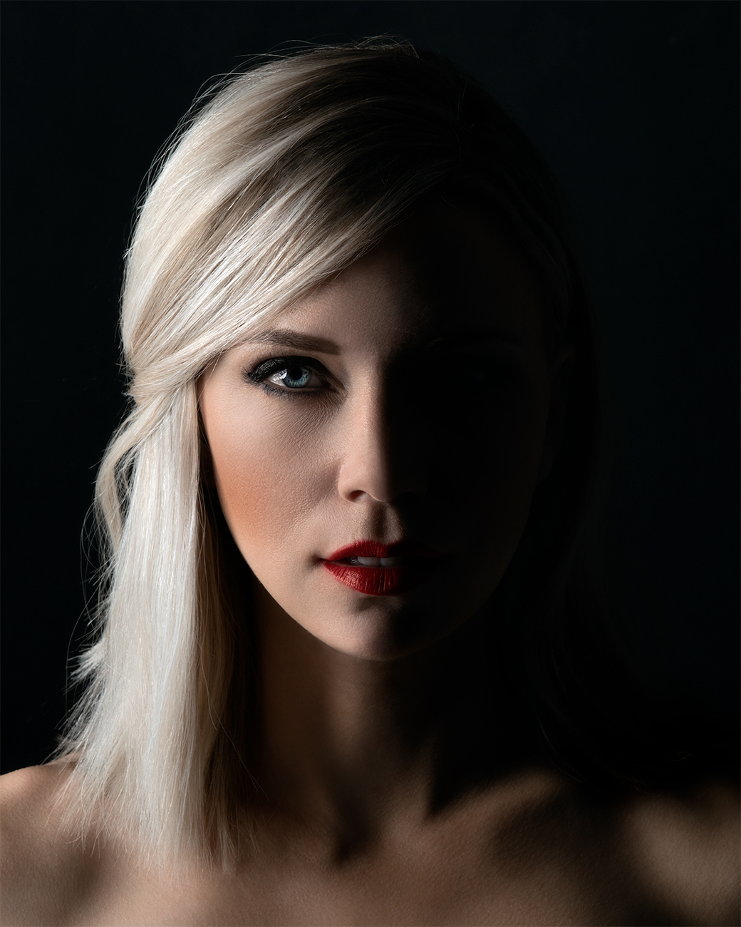 This is a headshot of my wife taken in my home studio about 5 days ago. I was practicing dramatic lighting techniques and went with split lighting for this particular headshot. I really dig the way it turned out! The light used to create this image was a single fj400 with a 34” round softbox, two layers of diffusion, and a grid.