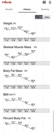 Went to the gym yesterday for body measurements. Finally got below 200lb and continuing the body fat loss as well as gaining some muscle! I'm going to increase cardio this month and continue shooting for lower body fat and muscle retention.