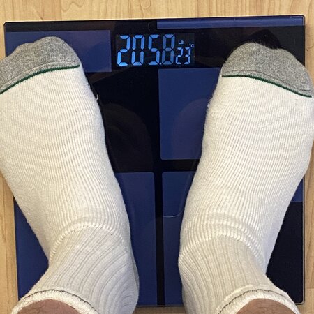 I've got skinny arms and legs and a big ol' gut. I've been floating between 210 - 220 for years and would be much happier down around 190. I'll do an official weigh in on the 1st.