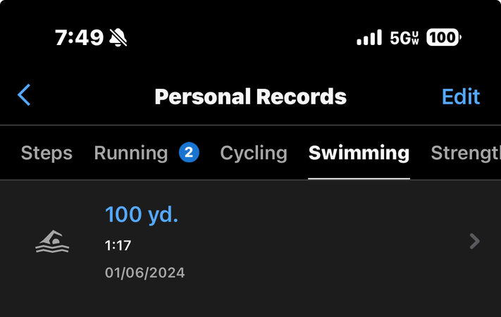 Funny part is I have been feeling sluggish in the water, but numbers dont lie. I just managed to beat my previous best by 7 seconds! So my 100Y PB is 1:15 which is a huge boost of momentum as I continue to try and maintain a 1:30 pace for 1650Y total.